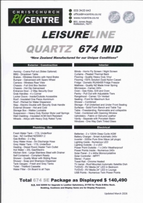 - We have the very latest 674 SE (6.7m = 22ft) model out of the factory priced at $140,490 Cloth or $142,490 Leather upholstery.